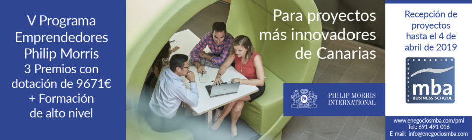 El V Programa Emprendedores Philip Morris 2019 consta de capital semilla de 9.671,00 € y tiene como objetivo apoyar a los emprendedores de Canarias, fomentando la innovación y la actividad económica.